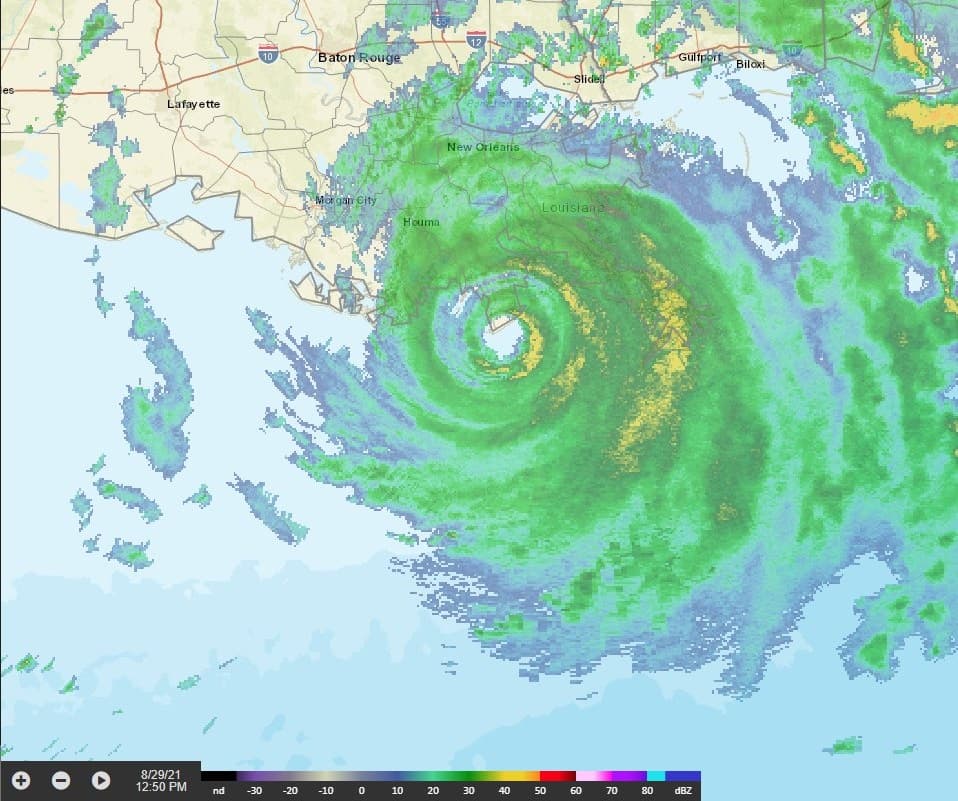 Arrivée de l'oeil sur Port Fourchon ce dimanche 29 août 2021 – NOAA