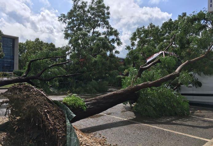 Arbres couchés par l'orage aux 7 Collines à Nîmes le mardi 14 septembre 2021 - photo Midi Libre
