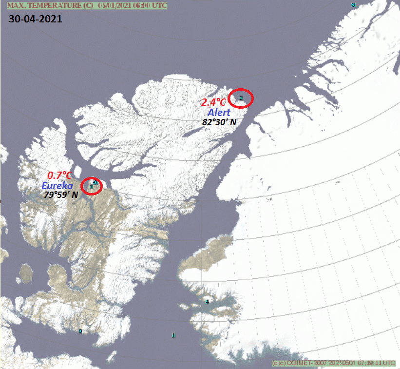 Records de températures en Arctique le 30 avril dernier – Via OGIMET