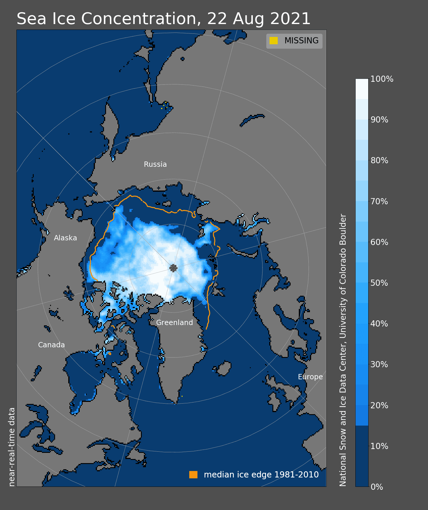 Banquise arctique : A quelques semaines du minimum annuel, l'extension des glaces à la mi-août 2021
