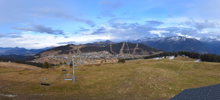 Manque de neige aux Saisies (Savoie) à 1800 mètres ce jeudi 25 novembre 2021 - webcam skaping