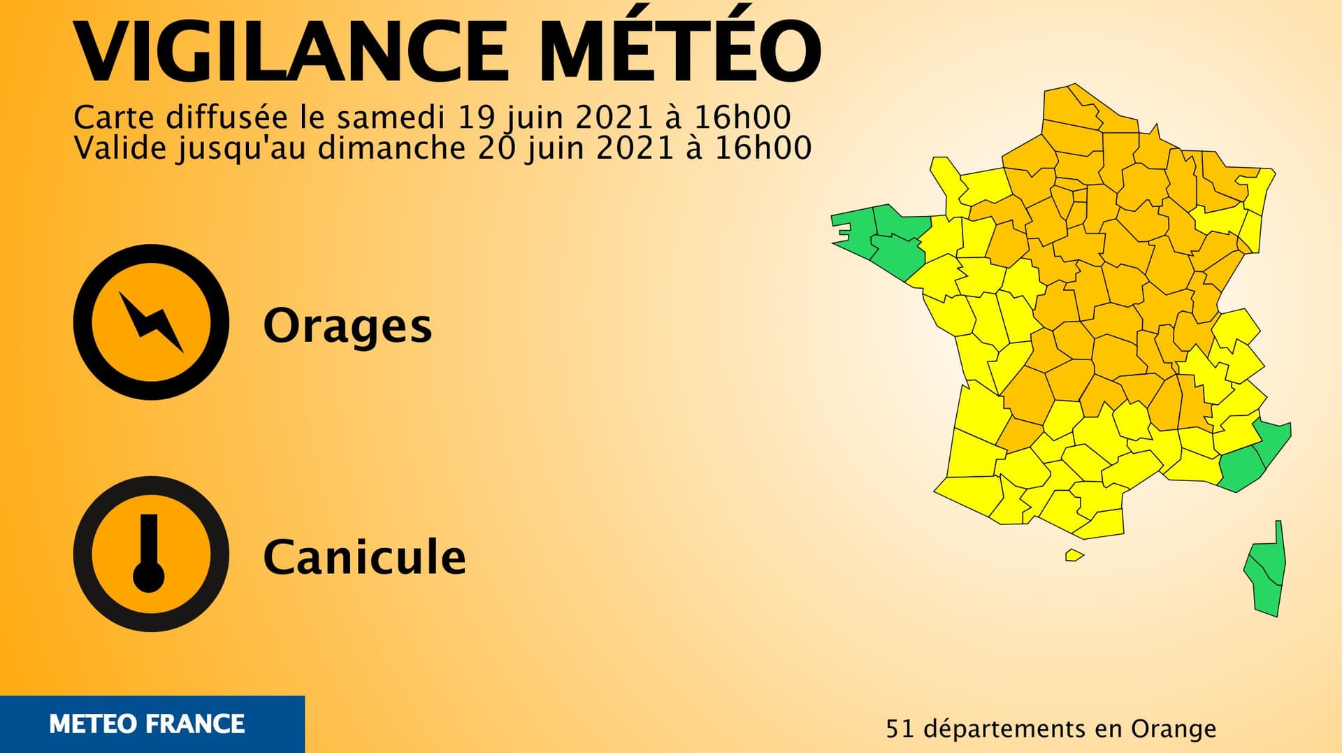Carte de vigilance du samedi 19 juin 2021 à 16h00 - Météo-France