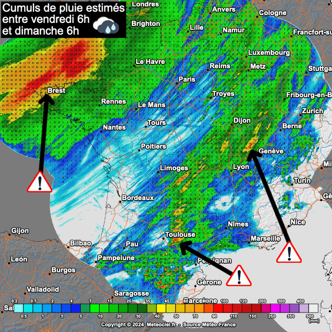 Ce 24 août 2024, de violents orages étaient prévu sur le pays, notamment sur un axe classique du Sud-Ouest au Nord-Est. Dès 6h du matin, la vigilance était lancée par Météo France pour les phénomènes suivants: