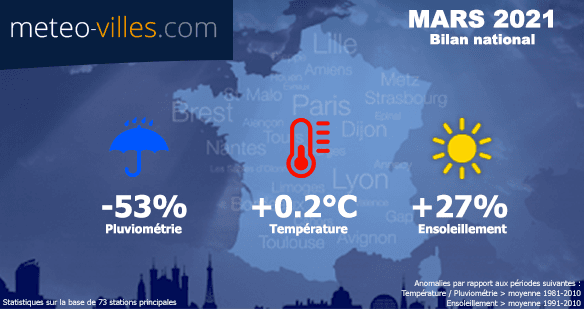 Bilan météo et climatique de mars 2021 : très peu de pluie, beaucoup de soleil ! 03/04/2021