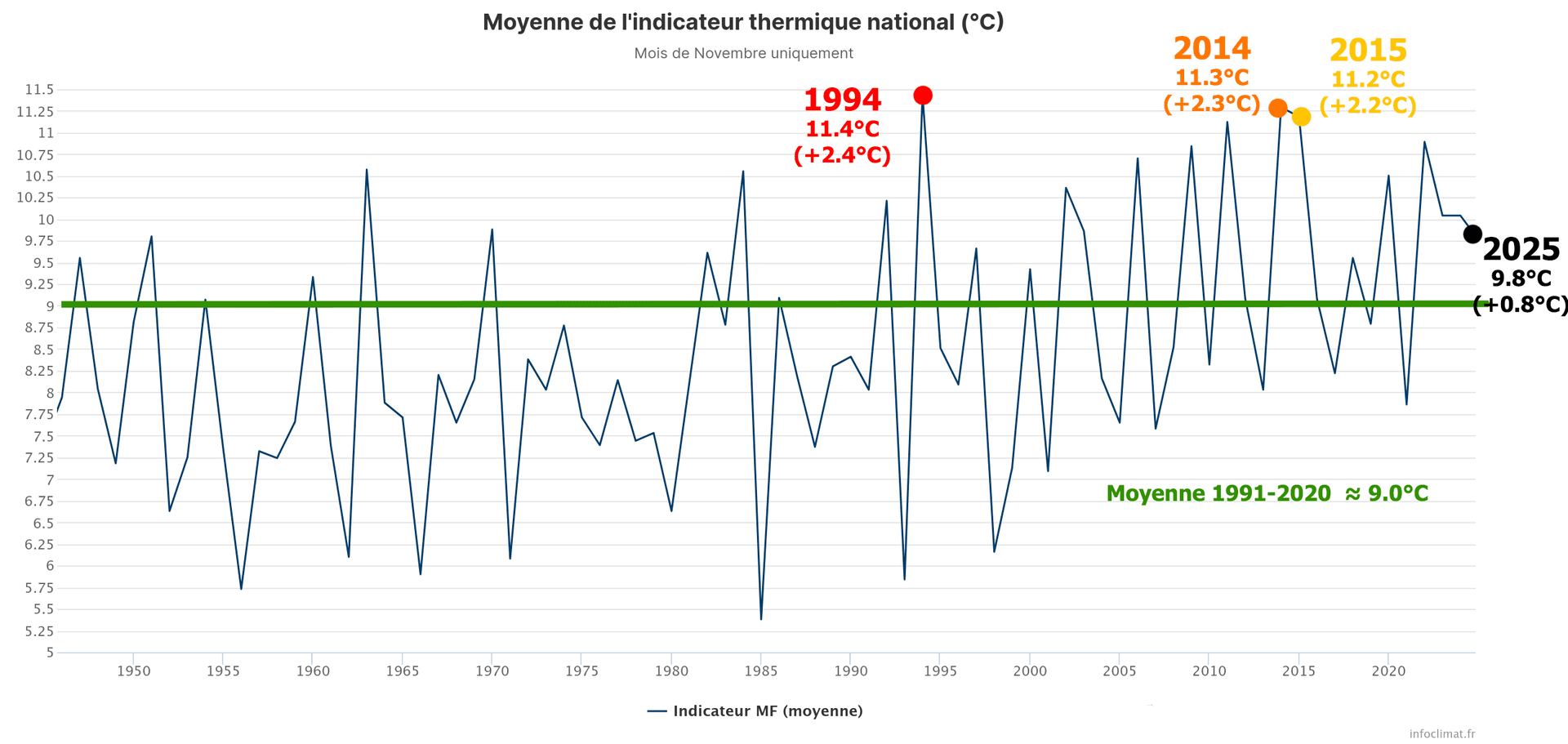 Indicateur thermique national en novembre depuis l'après-guerre (1946) - Infoclimat