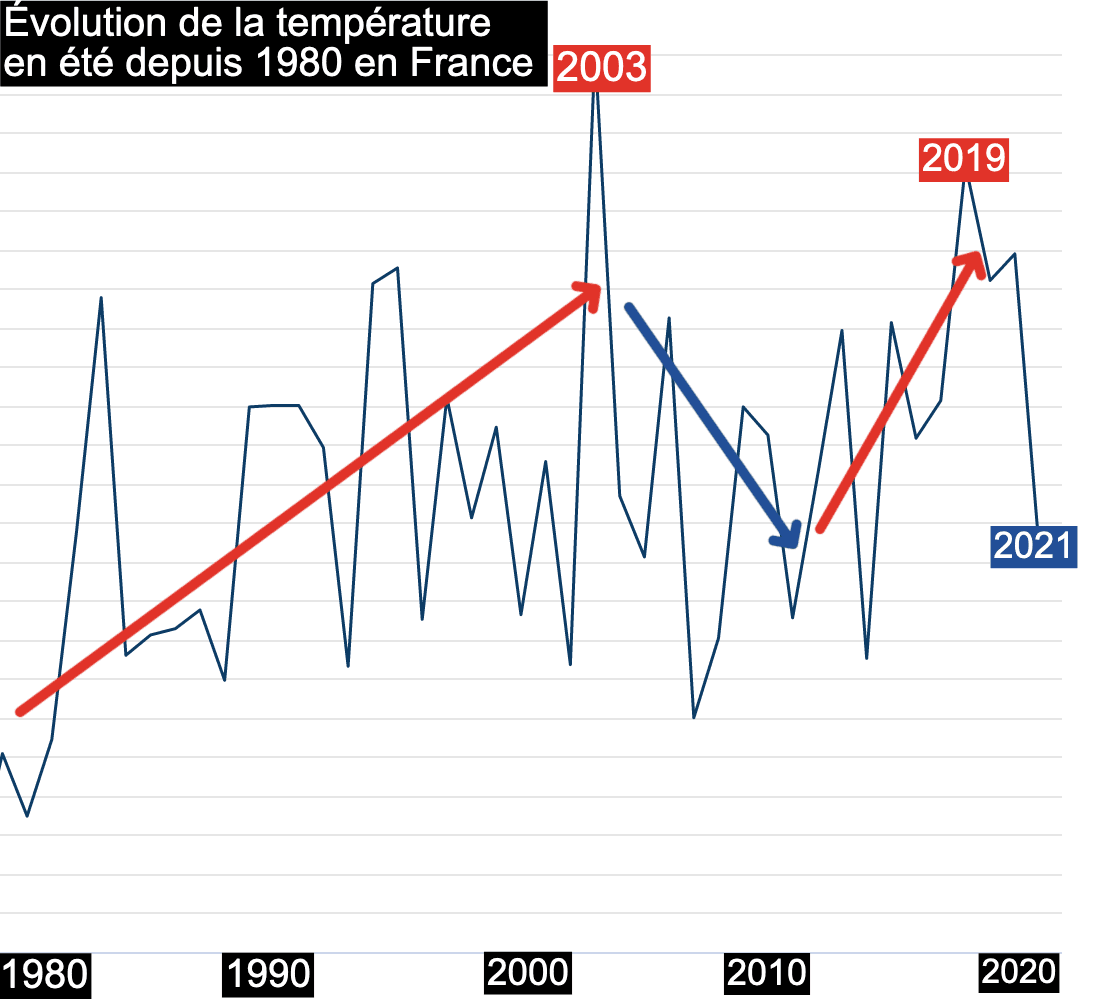 Évolution des températures estivales depuis 1980 en France – Météo-Villes