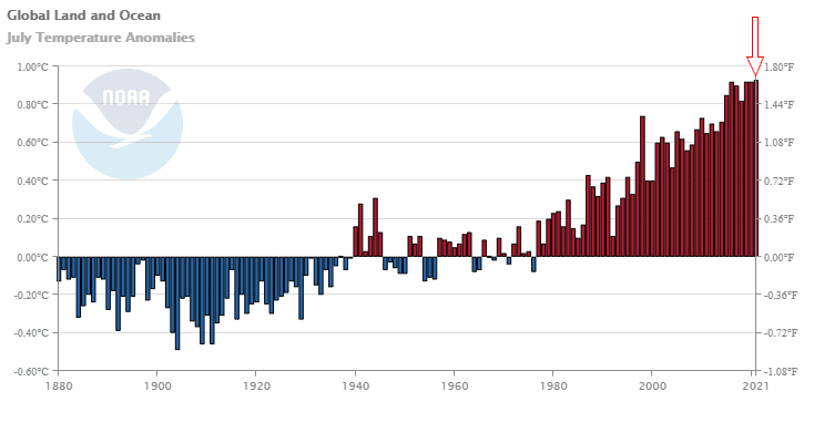 Rappel : Le mois de juillet 2021 est considéré comme le plus chaud jamais observé dans le monde depuis le début des relevés météorologiques par la NOAA