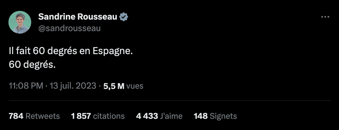 Depuis ce vendredi, un buzz médiatique est en cours à propos de la vague de chaleur remarquable qui concerne depuis plusieurs jours l'Ouest du bassin Méditerranéen. En cause : un tweet de la député Sandrine Rousseau, évoquant une température de "60°C en Espagne". Si cette température a bien été mesurée, il s'agit en réalité d'une mesure par satellite de la température du sol, bien distincte d'une mesure de l'air ambiant. Quelques éléments d'explications sont donc nécessaires.