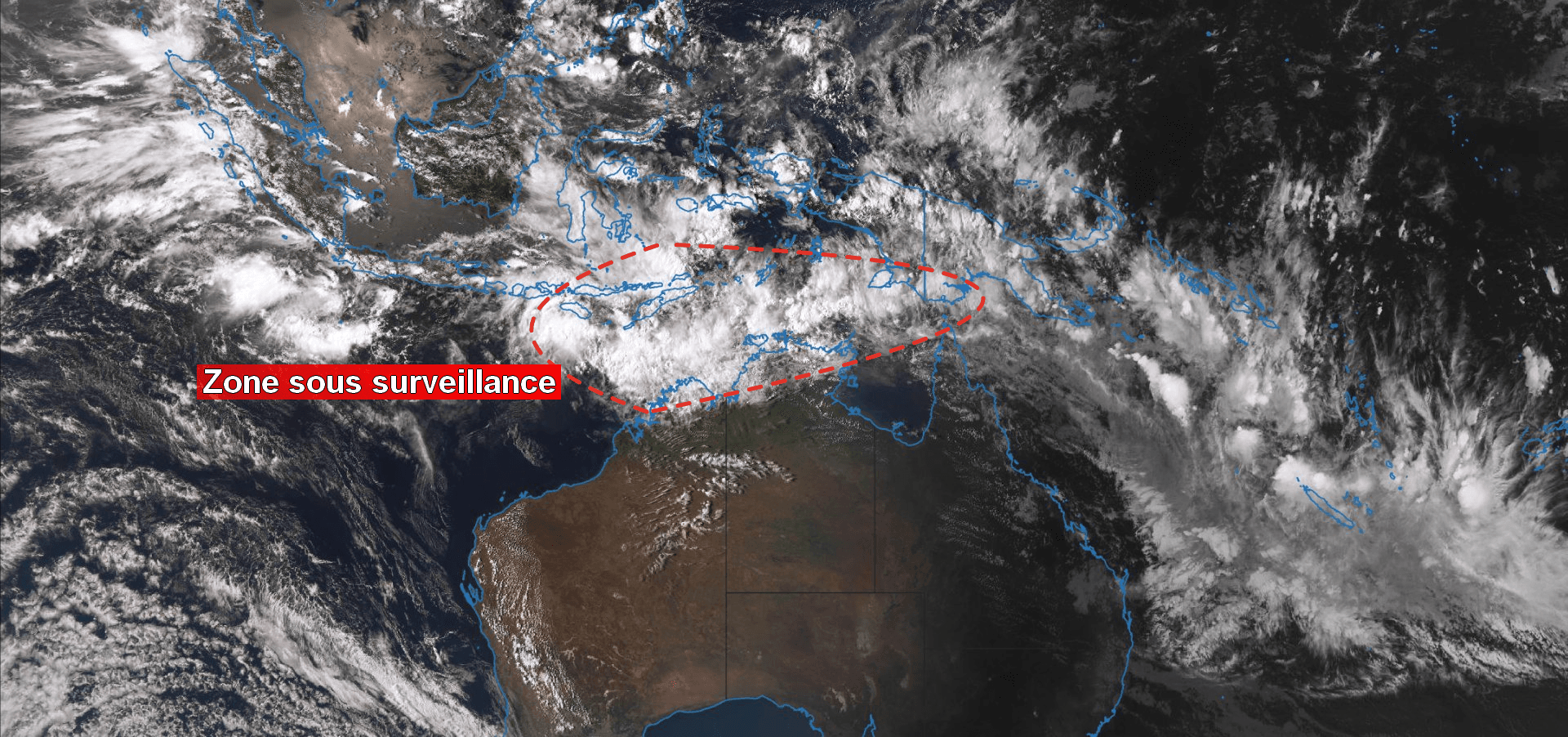 Le Bureau Of Meteorology (service de prévision national australien) place d’ailleurs cette zone très instable en surveillance pour les prochains jours, le risque de formation de tempête/cyclone tropical s’accentuant en mer de Timor notamment.