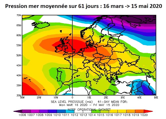Pression moyenne au niveau de la mer du 16 mars au 15 mai 2020 - via NOAA