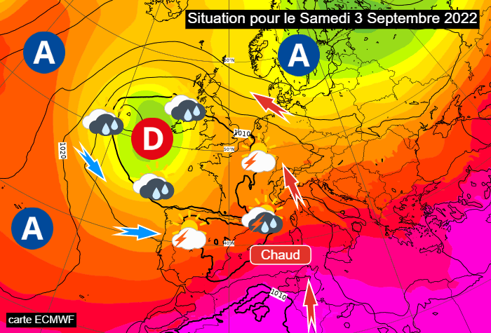 Situation à échelle continentale pour le samedi 3 septembre 2022 - via ECMWF