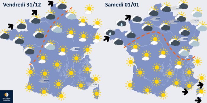 Prévisions du temps sensible pour les vendredi 31 décembre 2021 et samedi 1er janvier 2022 - Météo Villes