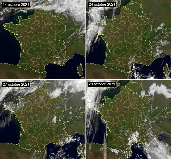 Images satellite de la France les 14, 24, 27 et 28 octobre 2021 - via EUMETSAT / meteociel.fr