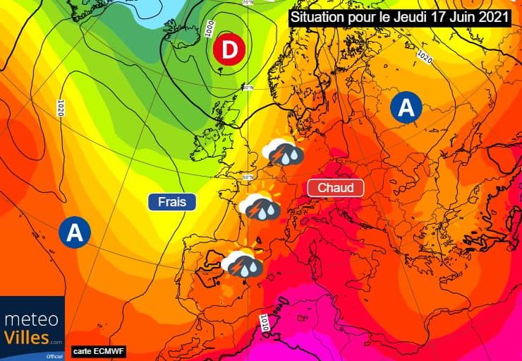 Situation à échelle continentale pour le jeudi 17 juin 2021 - via ECMWF