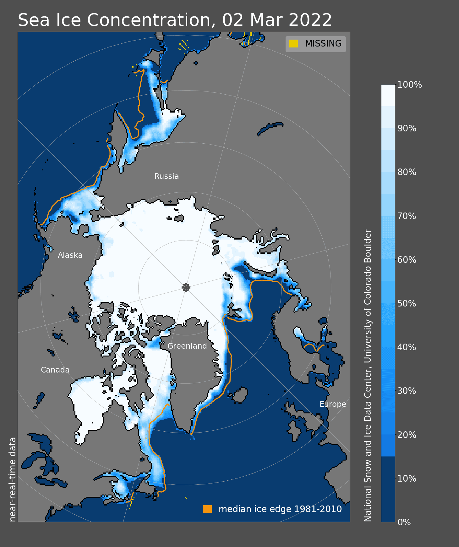 Extension de la banquise arctique au 2 mars 2022 – NSIDC