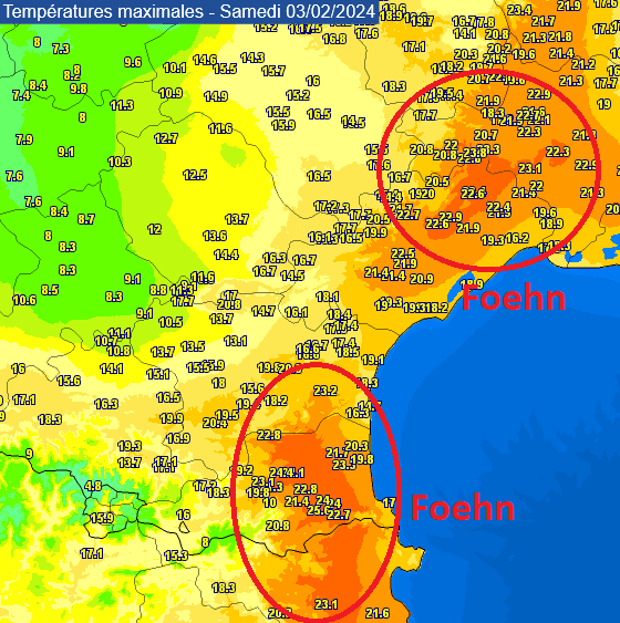 Autrefois, l'humidité des sols et l'évapotranspiration des végétaux permettaient de limiter l'envolée des températures. Hors, dans un contexte de réchauffement accru et forcé, en conditions sèches, il n'y a plus aucun frein à cette hausse. Les valeurs atteignent des niveaux inédits pour des mois d'hiver. Dans les Pyrénées Orientales, les +25°C ont été dépassés plusieurs fois entre janvier et les premiers jours de février.