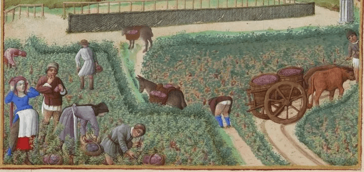 Récolte dans les vignes de Normandie lors de l'optimum médiéval - via Musée Condé de Chantilly