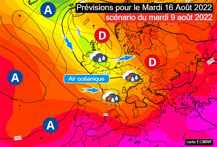Projection pour le mardi 16 août 2022 par le modèle européen du 9 août - via ECMWF