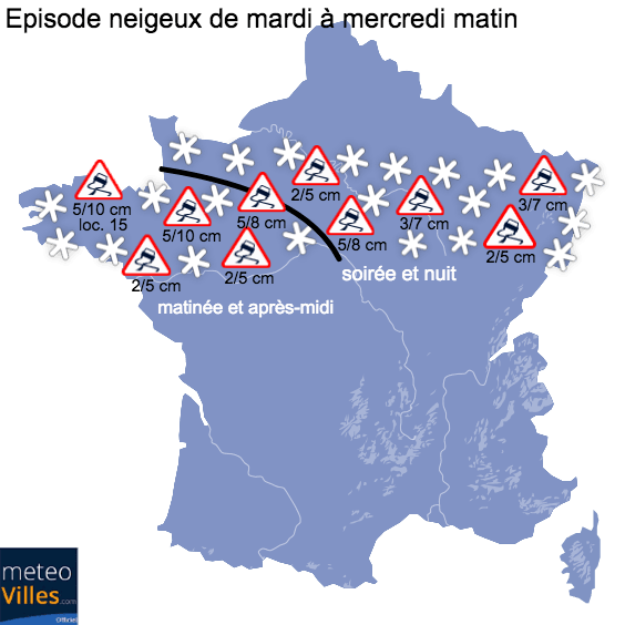 Accumulations neigeuses envisagées pour la journée de mardi 9 février 2021 – Météo-Villes
