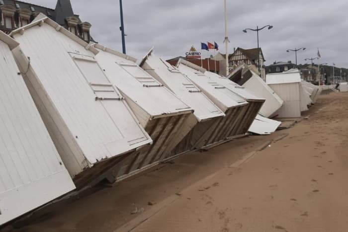 Les cabanes de Villers-sur-Mer renversées par le coup de vent samedi 18 juin 2022 - photo Christophe Lemoine