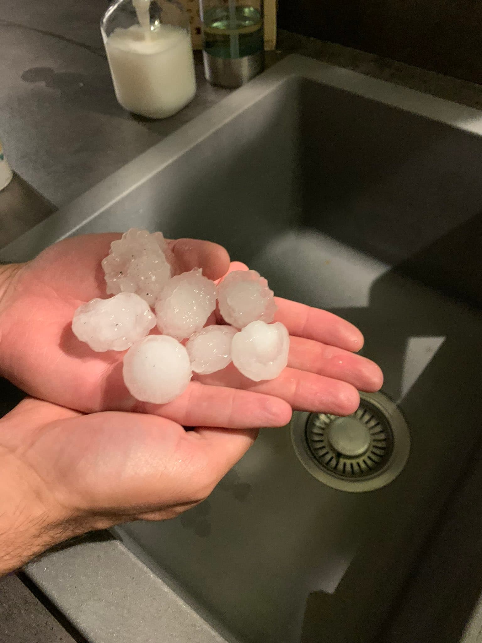 Grêlons de plusieurs centimètres de diamètre à Ballan-Miré (Indre-et-Loire) - nuit du 03 au 04 juin 2022 - Twitter @Steph_Fous