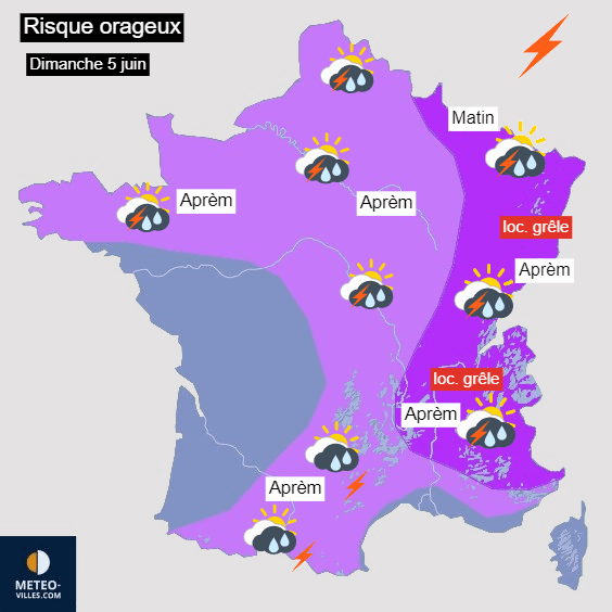 Risque orageux envisagé pour le dimanche 5 juin 2022 - Météo-Villes