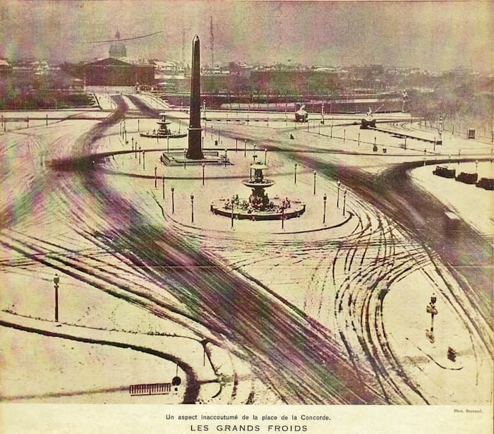 La place de la Concorde (Paris) sous la neige et quasiment sans circulation, en janvier 1941 - meteo-paris.com
