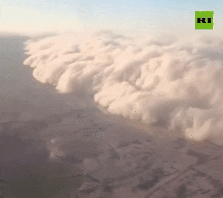 Cette tempête de sable était encore plus impressionnante en se rapprochant du sol. Les images aériennes ci-dessous ont été prises depuis un avion survolant le nord du Mexique au moment où la tempête de sable se produisait ce 19 avril 2025. On a l'impression de voir un "tsunami" de sable de plusieurs centaines de mètres de haut engloutir les villes sur son passage !