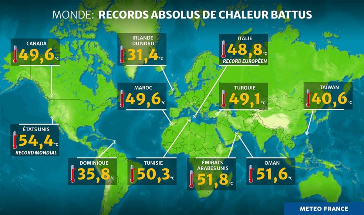 Records de température battus dans le monde depuis le début de l'année 2021 – Météo-France