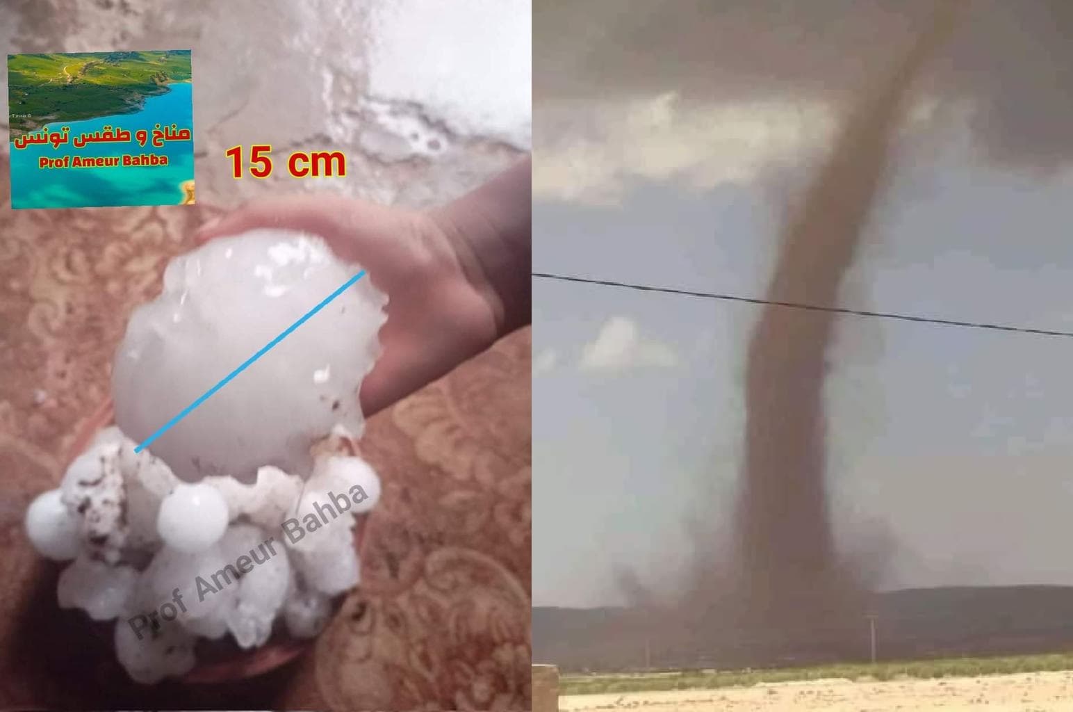 Grêlons géants et tornade près de Kasserine le 5 septembre 2021 – Via Prof amateur Bahba et Arab Storms