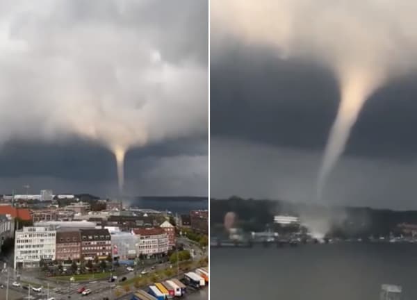 Trombe marin devenant une tornade à Kiel (Allemagne) le 29 septembre 2021 - via Udo Maaß
