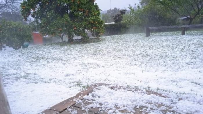 Très gros grêlons à Vichadero (Uruguay) le 30 septembre 2021 - photos Angela Gutierrez & Laura Gonzalez