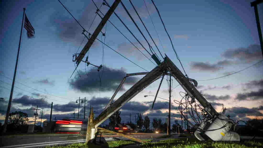 Ligne électriques détruites à Calmette en Louisiane au lendemain du passage du cyclone - Sandy Huffaker/Getty Images