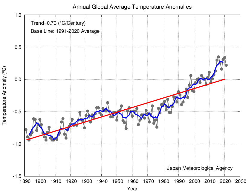 Augmentation de la température mondiale de 1890 à 2021 - via JMA