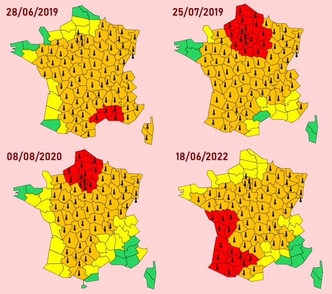 Quatre vigilances rouge canicule ont été déclenchées en France depuis 2019 - via Météo France