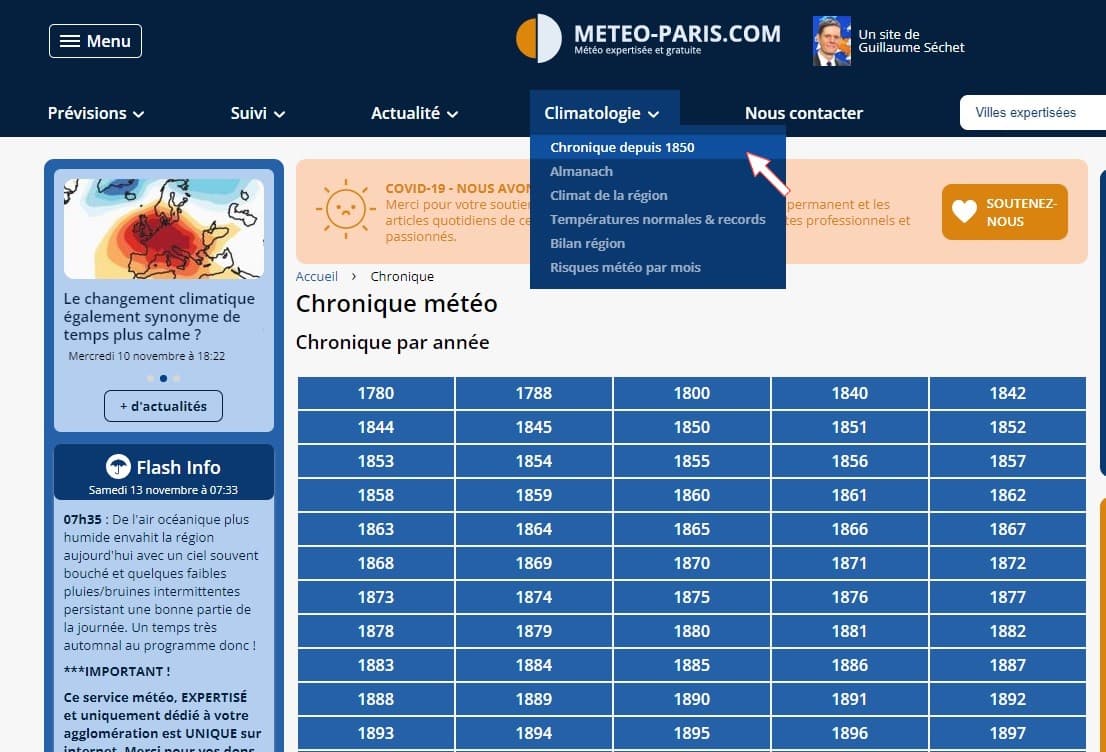 Capture d'écran de la Chronique météo depuis 1850 - Météo-Villes