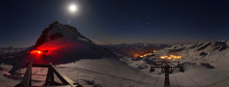 Pleine Lune éclairant les sommets de Val Thorens (73) dans la nuit du 27 février 2021 - via skaping
