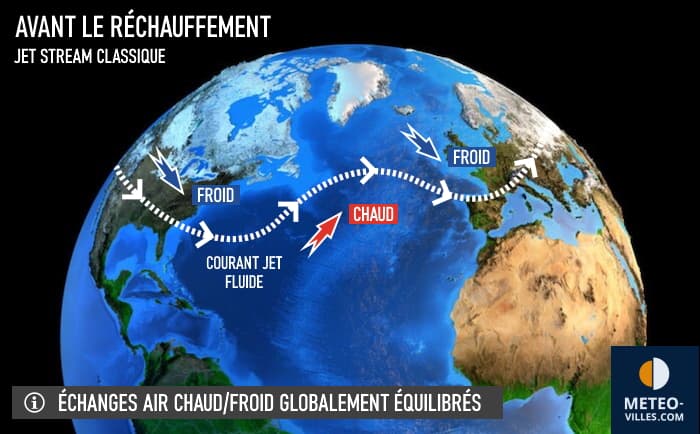 Le rôle du courant jet est d'onduler quelque peu afin de permettre des échanges entre les masses d'air froid du pôle et les masses d'air chaud des latitudes subtropicales. Un courant jet classique va ainsi faire le tour de l'hémisphère en ondulant de manière plus ou moins fluide au niveau des latitudes tempérées, permettant des échanges de masses d'air plus ou moins équilibrés. C'est la configuration dominante depuis des millénaires.