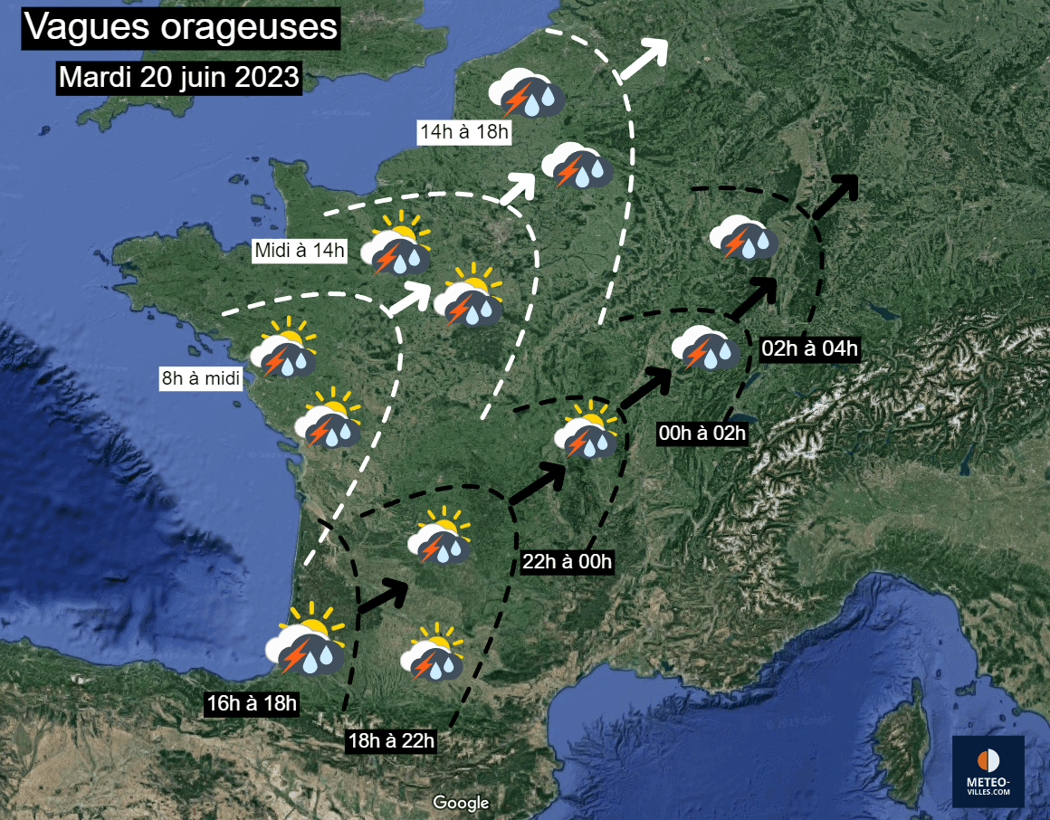 Vagues orageuses envisagées sur la France pour la journée du 20 juin et la nuit suivante - Météo-Villes