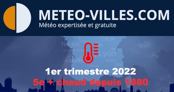 Si les gelées destructrices ont fait l'actualité en France au début du mois d'avril, il n'en demeure pas moins que ce début d'année a été très doux en France. Après un mois de janvier globalement dans les normes (pas d'anomalie avec bilan de 0.0°C >>), les mois de février (+2.3°C >>) et de mars (+1.2°C >>) ont porté ce premier trimestre 2022 bien largement au dessus des moyennes constatées au cours de la période de référence 1981-2010.
