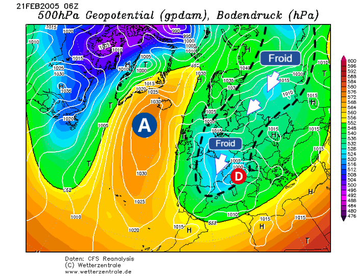 Situation du 21 février 2005 sur l'Europe – Via Wetterzentrale