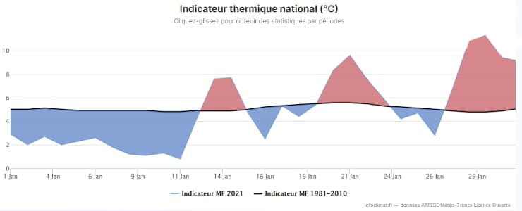 Écart thermique national en France du 1er au 31 janvier 2021 - via infoclimat.fr