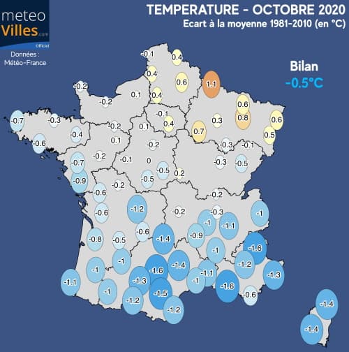 Anomalies thermiques en France au cours du mois d'octobre 2020 - Météo Villes
