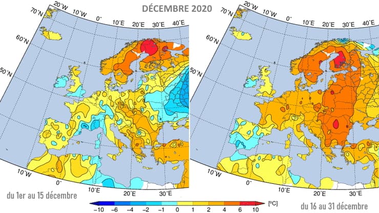 Anomalies thermiques en Europe sur les deux quinzaines de décembre 2020 - via JMA