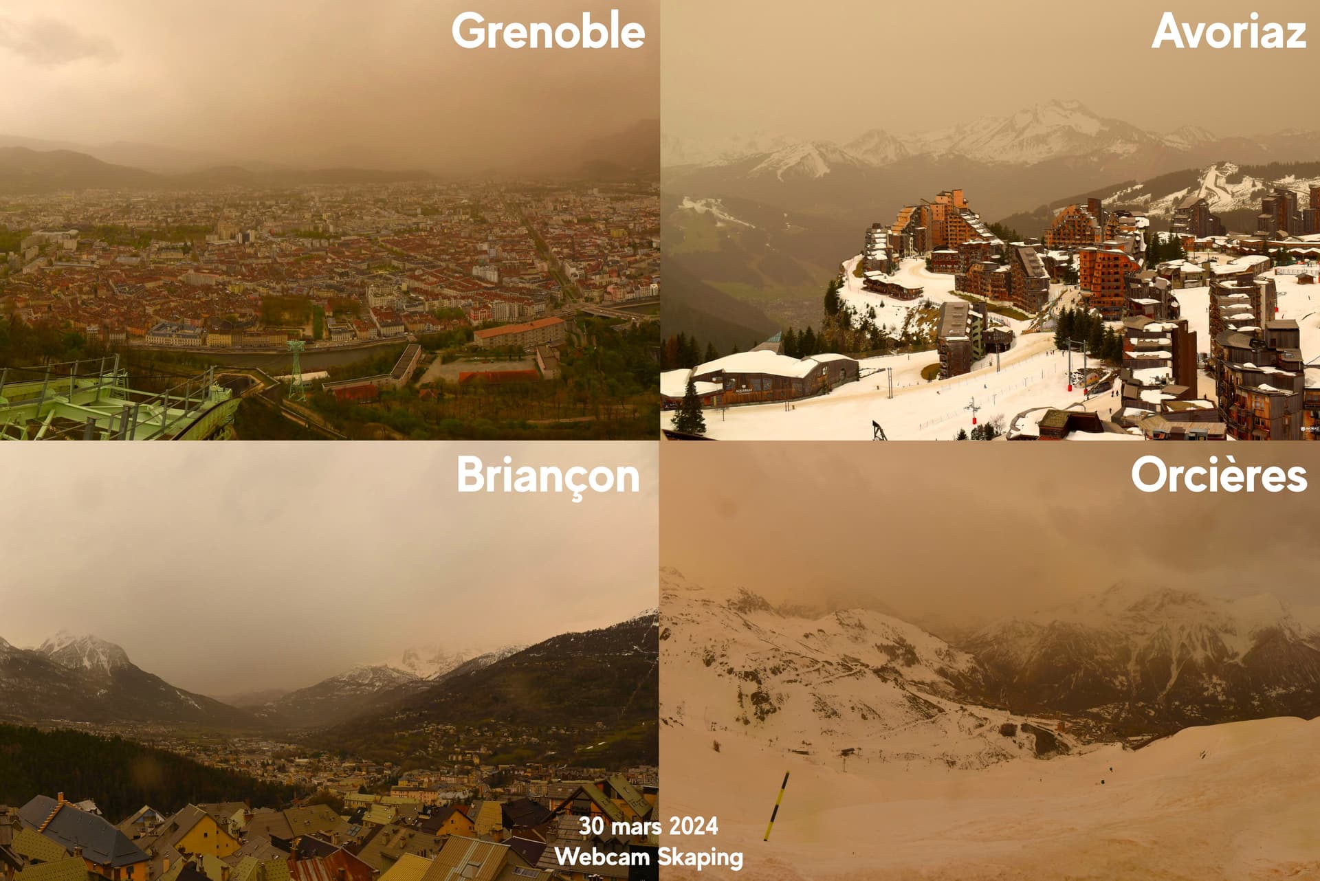 Importantes quantités de sable dans le ciel des Alpes le 30 mars 2024 - webcams skaping