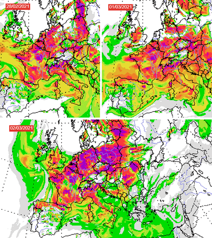 Concentration prévues des pollens d’aulne entre le 28 février et le 2 mars – via silam.fmi.fi