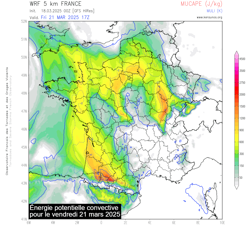 Énergie potentielle convective pour le vendredi 21 mars 2025 - keraunos.org