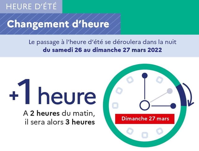 Enfin, n'oubliez pas que nous passons à l'heure d'été ce week-end ! Dans la nuit du samedi 26 au dimanche 27 mars 2022, nous avancerons nos montres d'une heure : à 2 heures, il sera 3 heures. Nous perdrons une heure de sommeil mais le soleil se couchera plus tard.