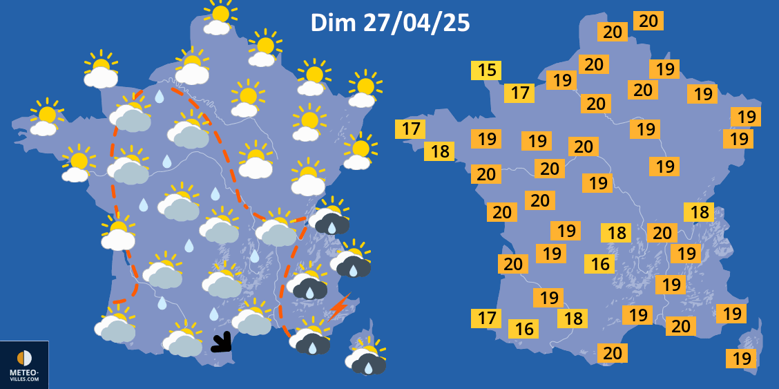 Météo et températures maximales pour le dimanche 27 avril 2025 - Météo Villes