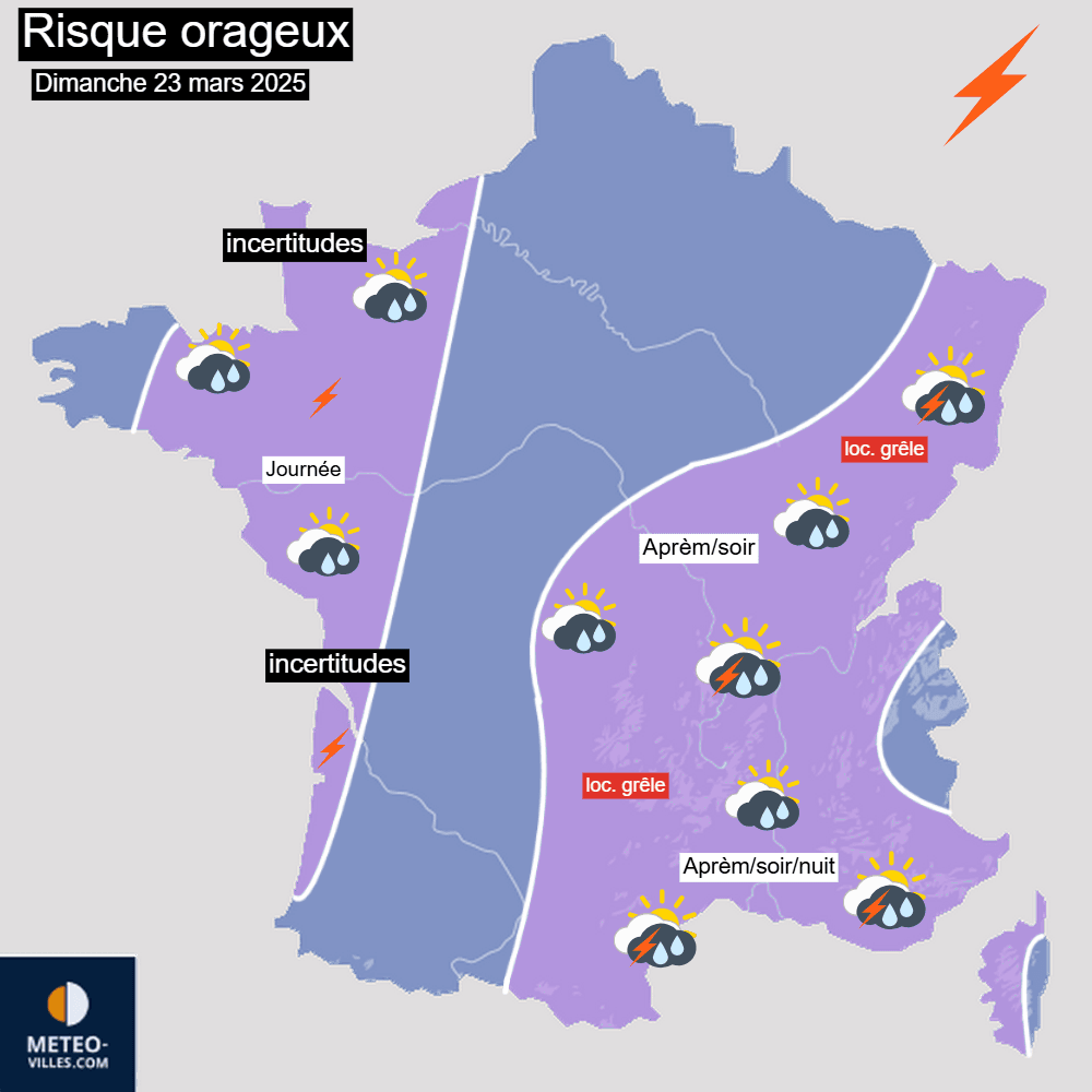 Risque orageux pour le dimanche 23 mars 2025 – Météo-villes